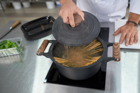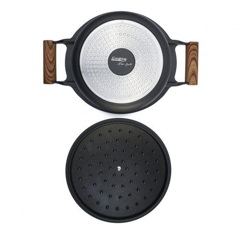 Taste of Home by Chef Sorin Bontea material: aluminiu turnat grosime: 2-5mm interior: non-stick exterior: strat negru rezistenta la termepeturi inalte baza potrivita pentru inductie manare soft touch
