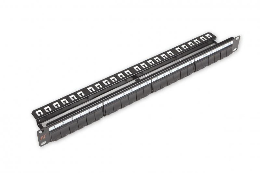 Patch panel Nexans LANmark-5 modular nepopulat 24 porturi 1U cu management cablu T-typeprotectie praf