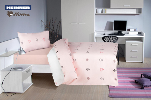 Set de pat single cu 2 fete- ANCORA. Setul este format din 2 piese si contine un Cearceaf de pilota150X200CM si o fata de perna 50x70 cm .Cearceaful de pilota are sistem de inchidere cu capse de plastic 100% Bumbac