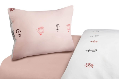 Set de pat single cu 2 fete- ANCORA. Setul este format din 2 piese si contine un Cearceaf de pilota150X200CM si o fata de perna 50x70 cm .Cearceaful de pilota are sistem de inchidere cu capse de plastic 100% Bumbacdensitate 144TC