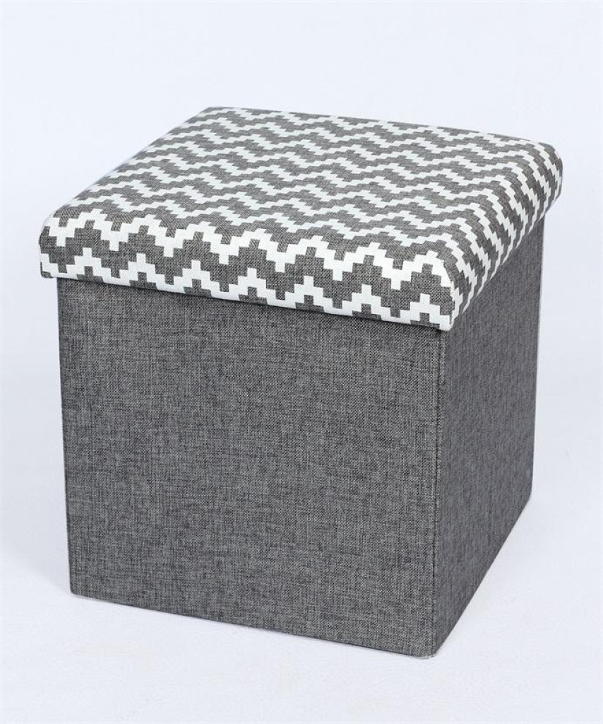 Taburet pliabil cu spatiu depozitare-Gri. Material exterior : textil+baza din MDF.Grosime sezut 20mm. Greutate maxima suportata 150 kg . Dimensiune produs 38*38*38CM